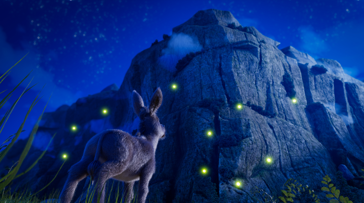 A lonely little donkey finds companionship in a mysterious light, embarking on a journey full of challenges and enchanting landscapes. Following its inner light, the little creature discovers a dazzling Christmas tree.